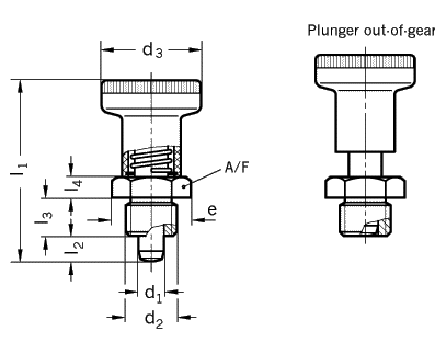 | d1 | d2 | d3 | e~ | l1 | l2 | l3 -0,15 | l4 | A/F | Spring load N~ | Axial | |